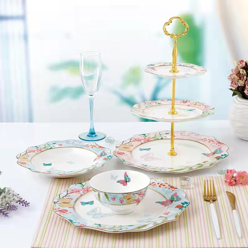 Inchins Mini European-style double layer of fruit pan ceramic Lower afternoon tea cake Snack Shelf Dessert
