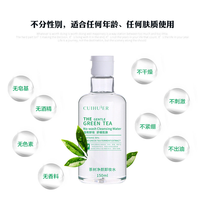 Cui Huier Tea Tree cleansing makeup remover 150ml wholesale women's gentle cleansing eye and eye makeup remover light makeup face