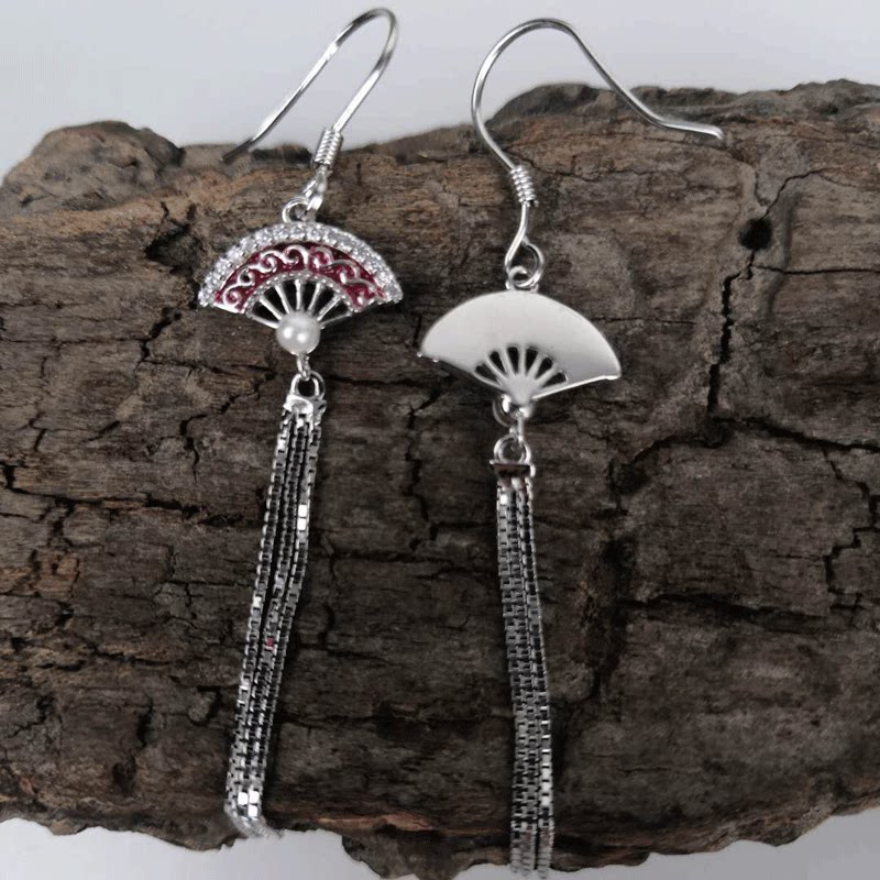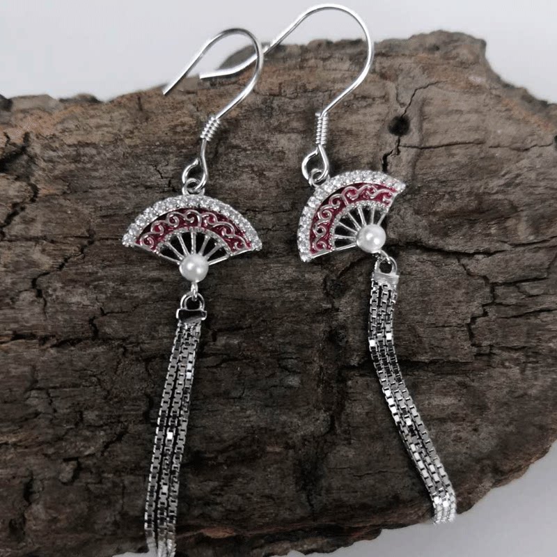 Ancient Wind Fashion women's silver earrings 925 silver long version of streaming suza fan earrings with a pair of cropped earrings