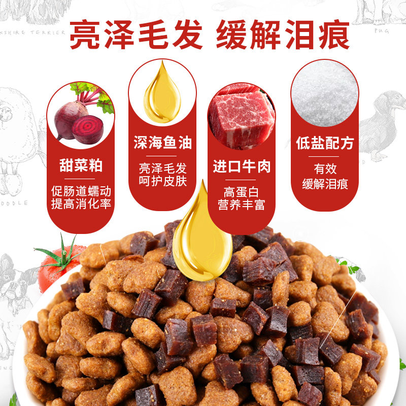 Mcfudy Dog Food 10kg Beef Double Parquet Grain Teddy Gold Mulke Kibi Bears small adult dog universal 20 catty