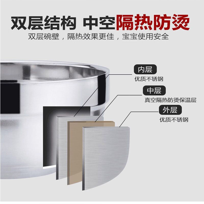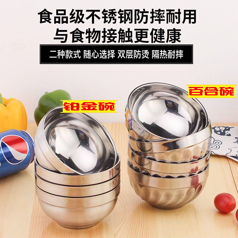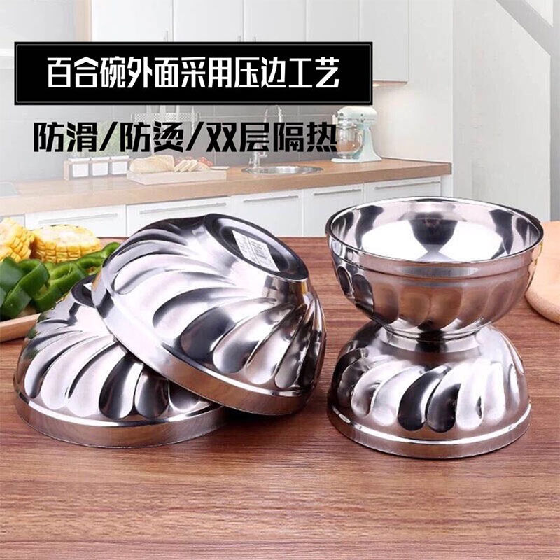Stainless Steel Lily Bowl Double Thick Anti-hot Insulation Bowl Children Iron Bowl Kindergarten Small Bowl Rice Soup Bowl Set