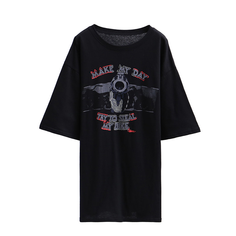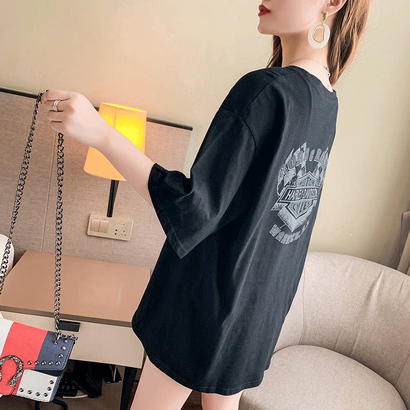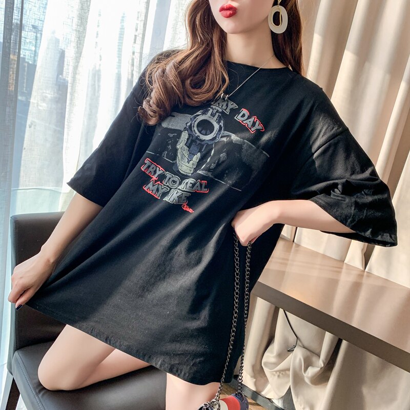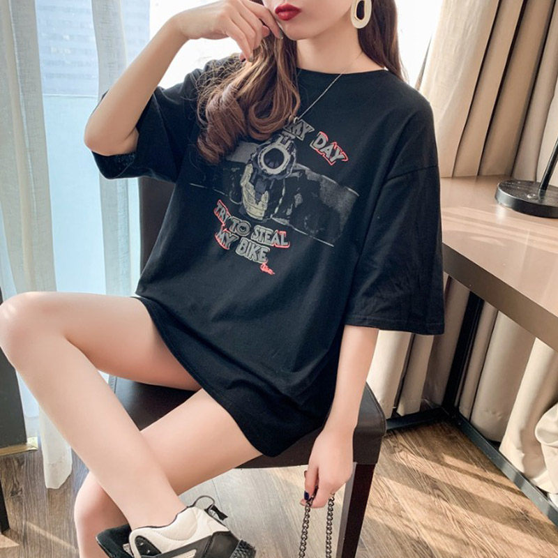 Ins tide super hot cartoon print short-sleeved new 2022 summer Korean version loose mid-length bf student top