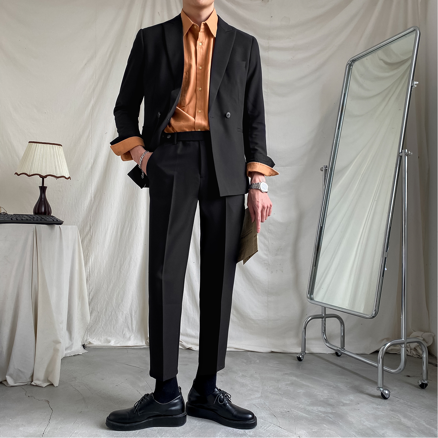 Men's thin western suit suit trendy Korean version uppie handsome Inron wind up and casual suit Two sets of wedding groom