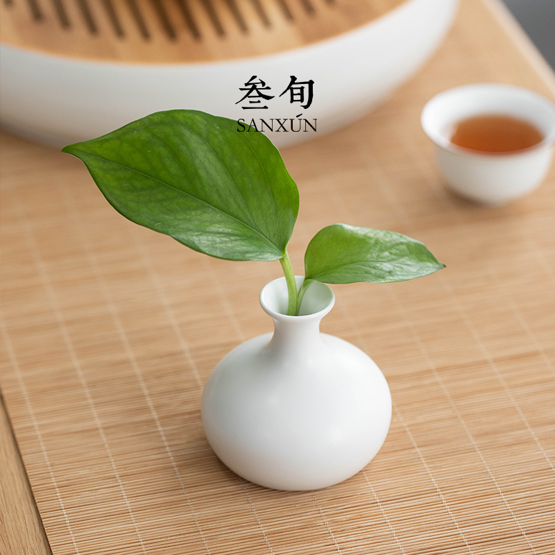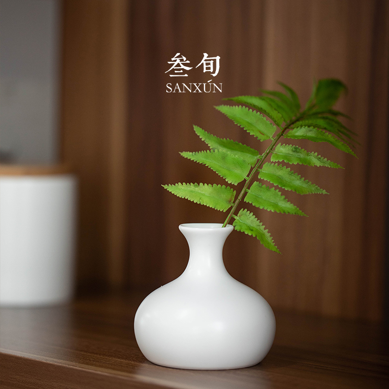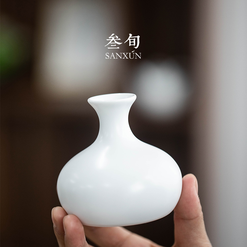 Thirty-year-old fat white ceramic flower pot living room dry flower flower arrangement vase Japanese-style hydroponic flower device fresh tea decoration