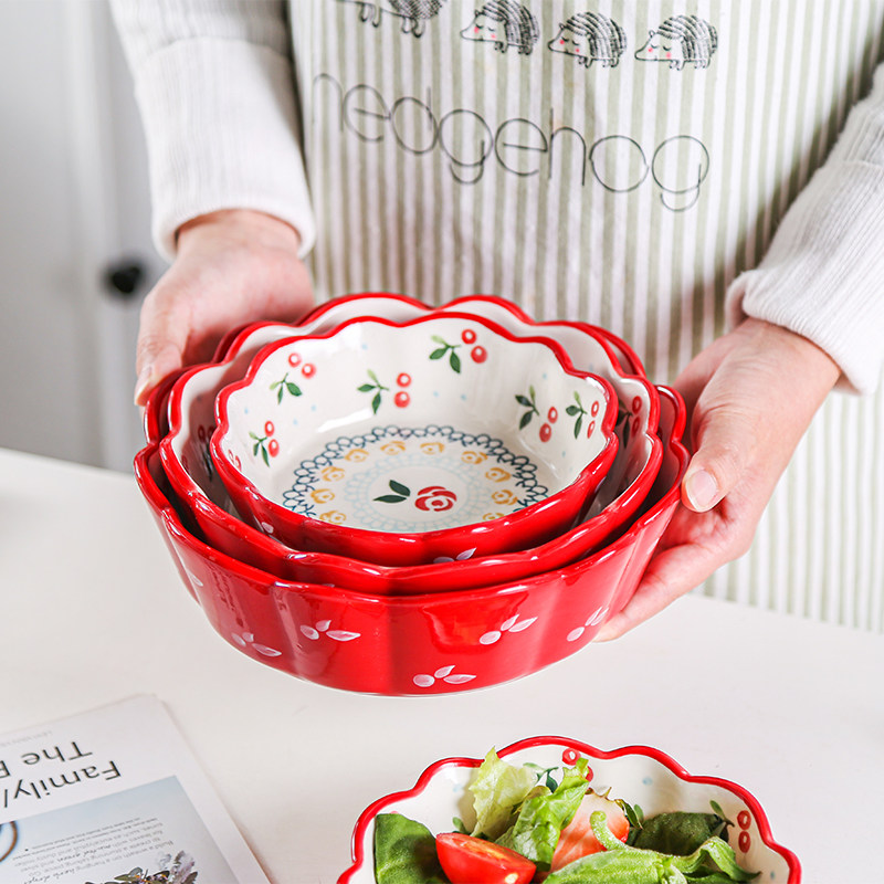 Cherry Binaural Disc 7 Inch Spring Rhyme Lace Bowl Cherry Double ear Rectangular Dish 8 Inch Spring Rhyme Lace Bowl 6 Inch Cherry Bowl 3 Delivered Stainless Steel Fork 6 Inch Spring Rhyme Lace Bowl Heart-shaped