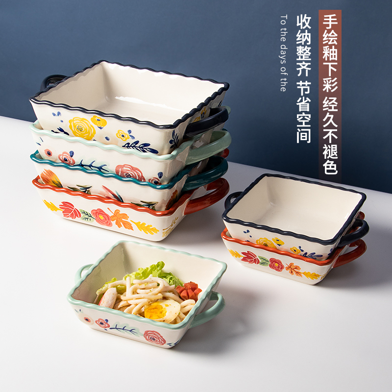 Ceramic baking plate baking bowl microwave oven special utensils tableware household creative net red plate cheese baked rice bowl