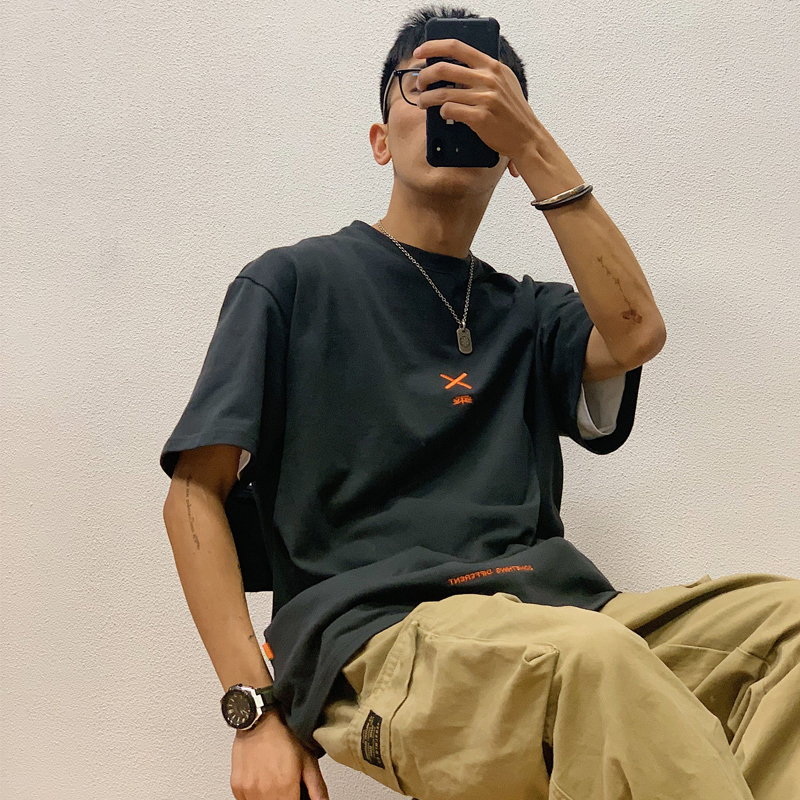 Summer 2021 new simple symbol embroidery short-sleeved T-shirt men's trend brand trend couple loose round neck half-sleeved tee