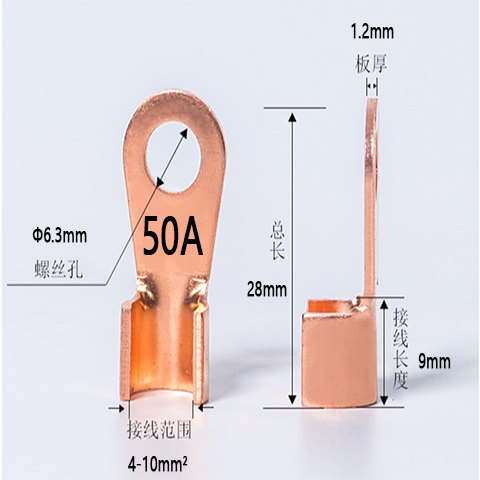 National standard copper open nose A grade thickened copper open nose wire terminal copper connector 70 boxes