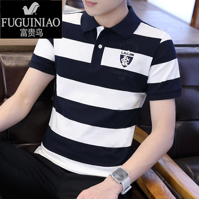 Rich Expensive Bird Official Nameplate Men Short Sleeve T-shirt Summer Turnover Striped Half Sleeve Men's Summer Dress Polo Shirt