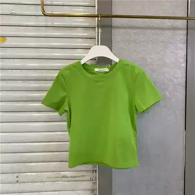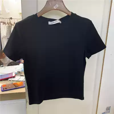 HAPPY sweet white T-shirt women's short sleeve slim short small T new black round neck tight half sleeve solid color