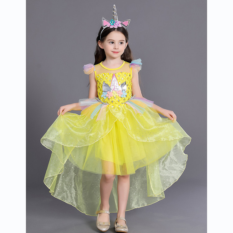 Children's pony rainbow pony pony princess dress girl unicorn dress drag tail gown dress girl birthday clothes
