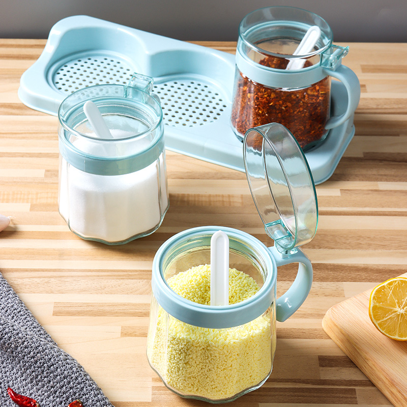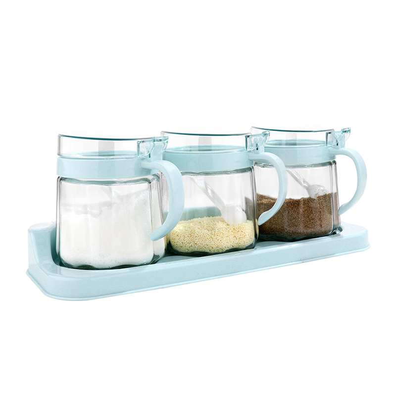 BJ Baijie home large capacity glass seasoning jar seasoning jar can salt MSG storage box seasoning box three-piece set