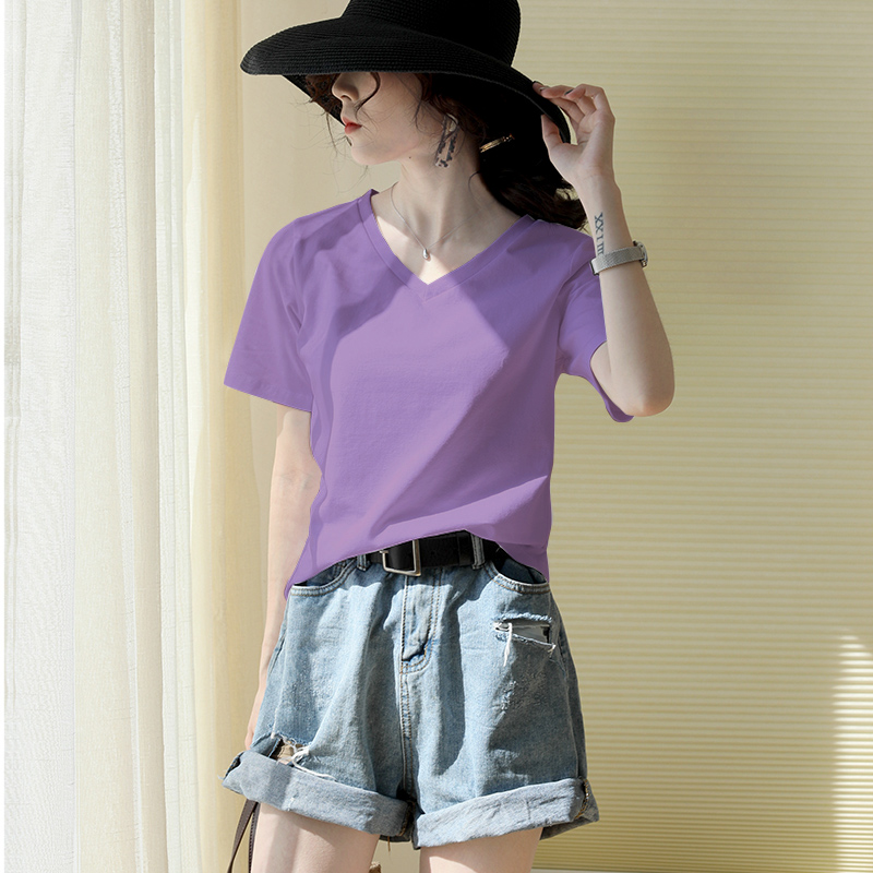 Summer loaded loose T-shirt female grey short sleeve minimalist casual internal hitch Han version swarm with slim half sleeve chic blouse