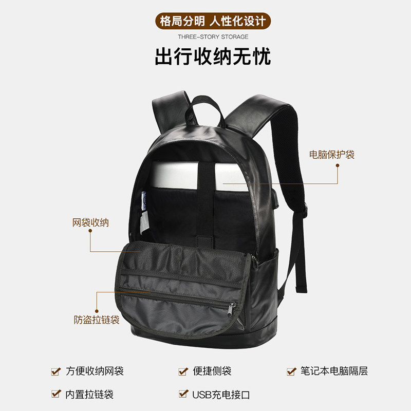 Double Shoulder Bag Men Tide Bag Han Edition PU Travel Bag Student School Bag Large Capacity Computer Bag Tide Fashion Casual
