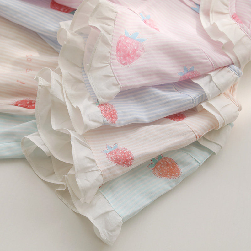 Summer girl sleepwear short sleeves 7 Pants Suit Strawberry Princess Breathable Full Cotton Cotton Cloth Round Collar Cardiovert