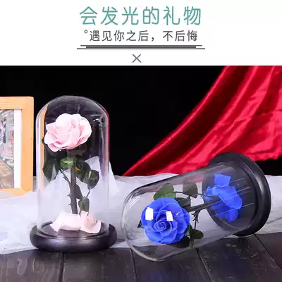 Ding Cheng Little prince glass cover rose immortal bouquet gift box to send girlfriend birthday Valentine's Day creative gift