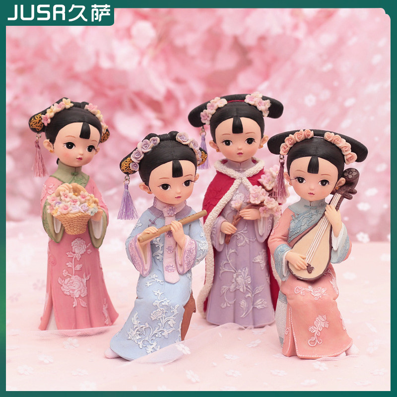 Trumpet holding cat trumpet take pipa small number take fan trumpet take handkerchief flute flower basket plum blossom pipa Emperor play piano, draw, read, play chess, play piano with lamp draw
