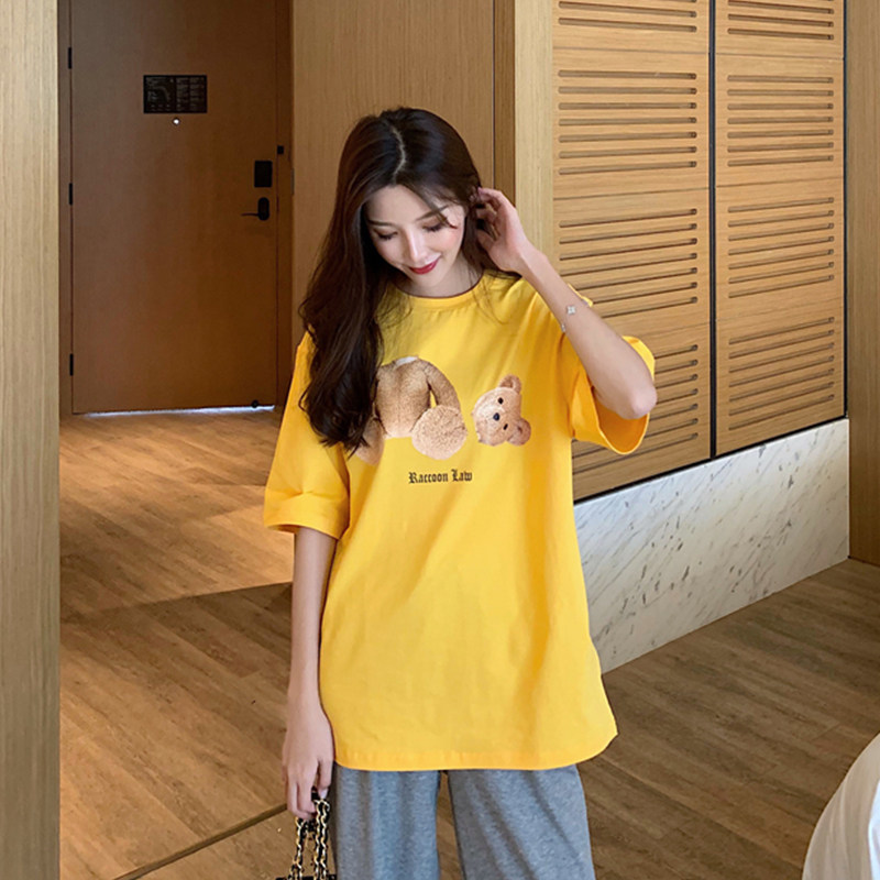 Large size summer new Han version of the relaxed cartoon short sleeve T-shirt female network red port, middle and long edition half-sleeve in tide