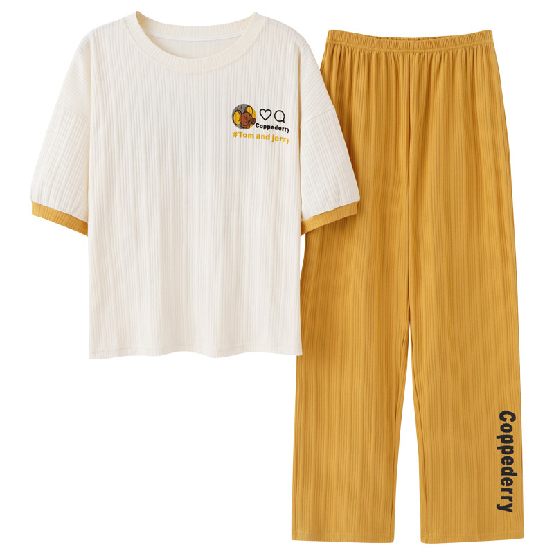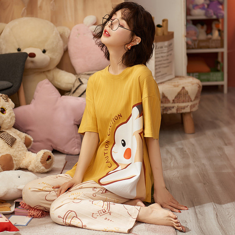 Sleepwear Women Summer Slim pure cotton short sleeves Long pants spring autumn and autumn 2021 New Home Suits Two Style Suits