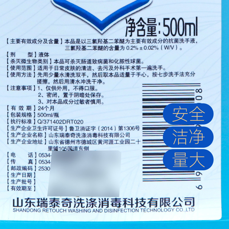 Reitetch Brand Antibacterial Hand Wash Liquid 500ml Clean Bacteriostatic Medical Surgical Hand Clear Water Rinsed for disinfection and sterilization