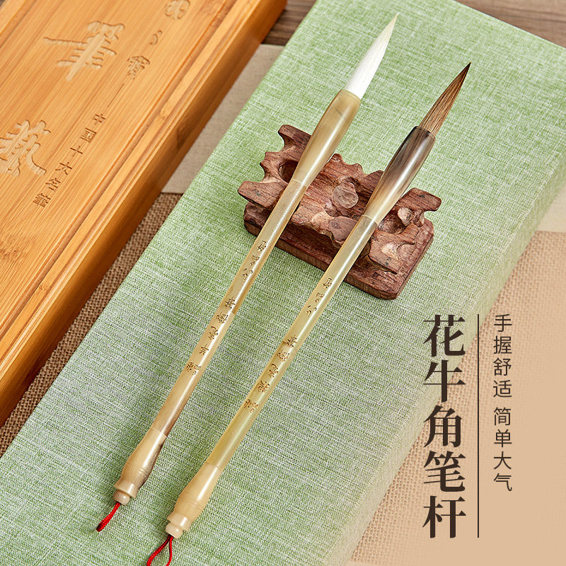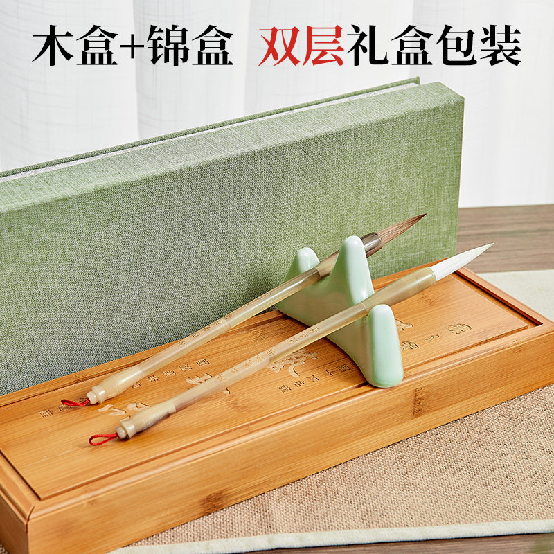 Liupintang Hu brush brush set, four treasures of study, calligraphy and painting, wolf hair and sheep hair gift, boutique gift box, medium medium regular script brush, high-end gift box, adult professional calligraphy, home pen