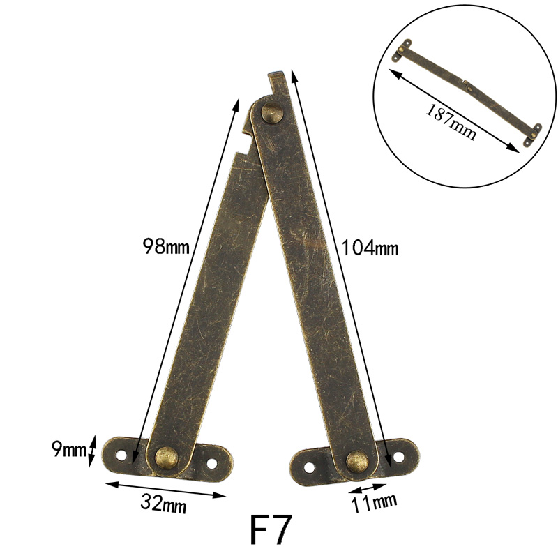 Multi-Spec Iron Support Hinge Pull Rod Wooden Case Support Tripod Imitation Antique Five Gold Accessories Hinge Gift Box Wooden Case Corner