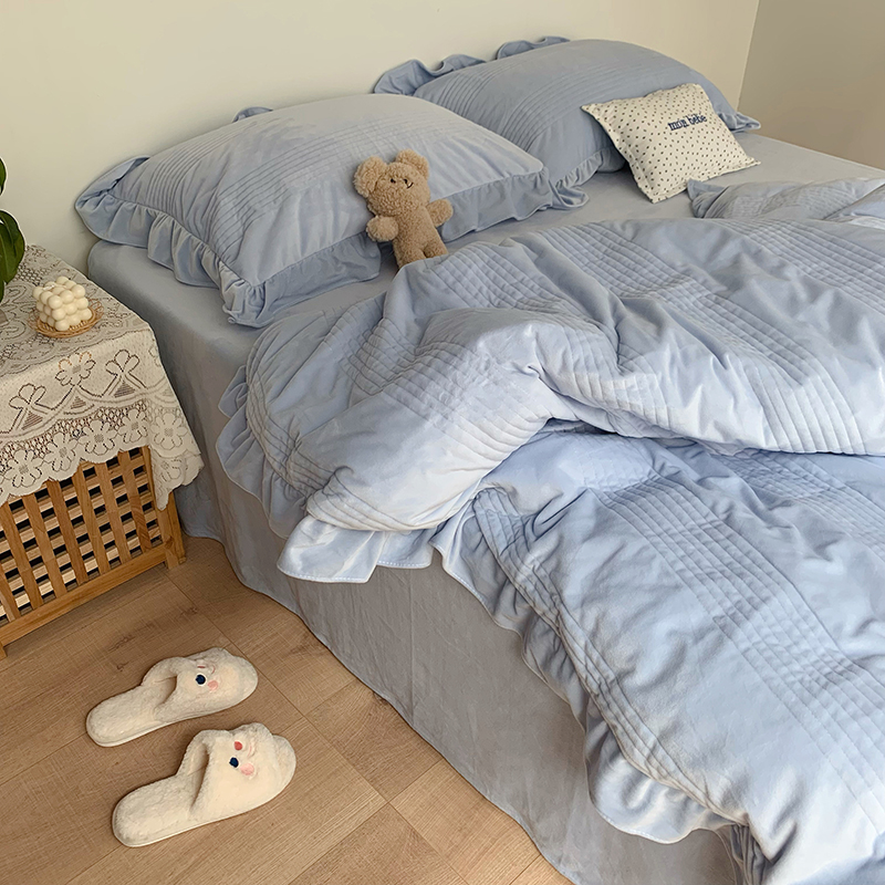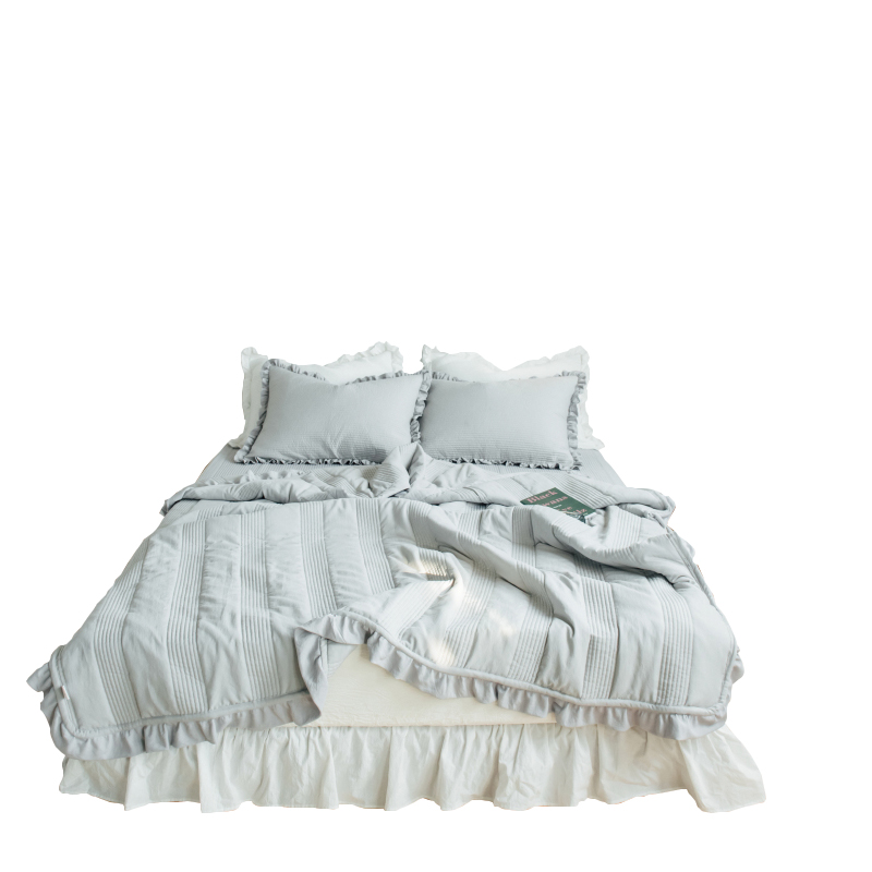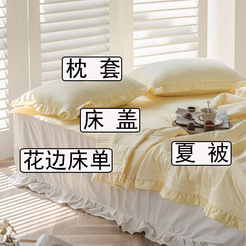 (The color of milk fufu) Korean macaron color washed cotton summer quilt lace air conditioner quilt bed sheet dual-use bed cover