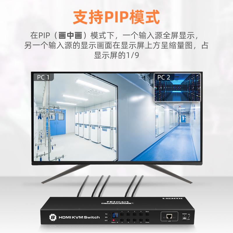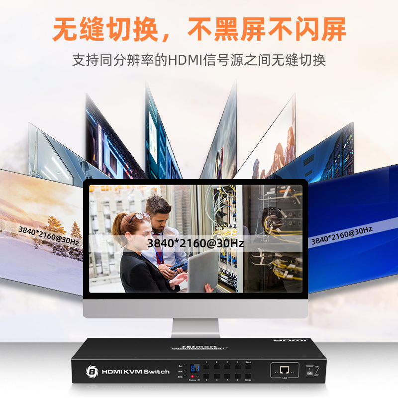 TESmert KVM Switch 8-port HDMI seamless switching 4K@30hz Multi-computer automatic switching usb2 0