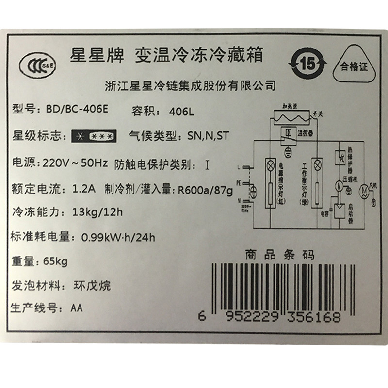 XINGX Stars BD BC-406E Large Freezer Commercial Large Capacity Freezer Frozen Emergency Frozen Full Freezer