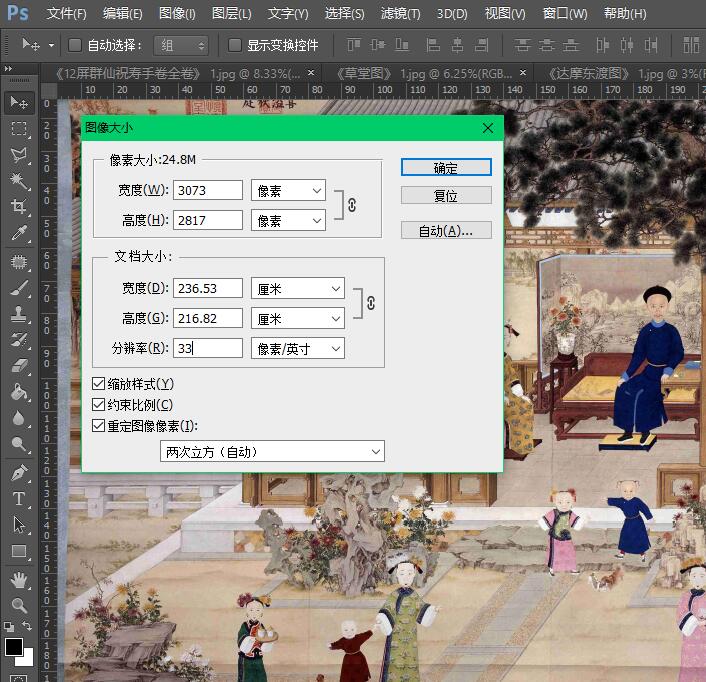 The Qing Daoguang Emperor's Overflowing Autumn Court Figure axis > Ultra-high-Qing electronic picture decoration spray-drawing identification of imitation material