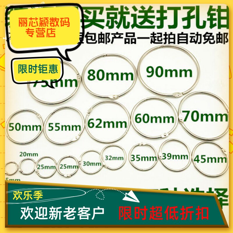 Ring metal ring buckle binding ring buckle open coil loose leaf removable ring iron ring buckle white paper