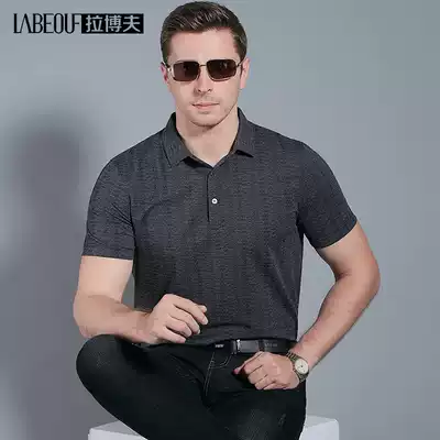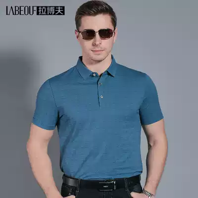 LaBeouf middle-aged mulberry silk men's T-shirt short sleeve dad loose lapel 2021 summer New loose polo shirt