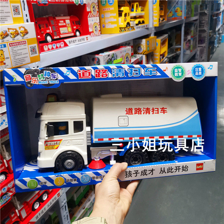 Lefei Music Engineering Vehicle Large Excavator Sprinkler Oil Tank Road Cleaning Car for Children's Injury Toy Car