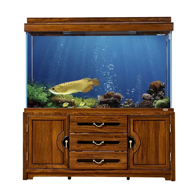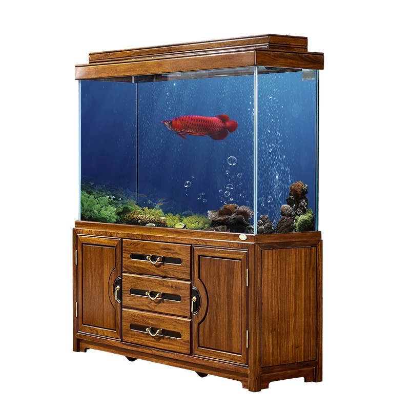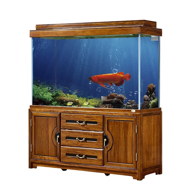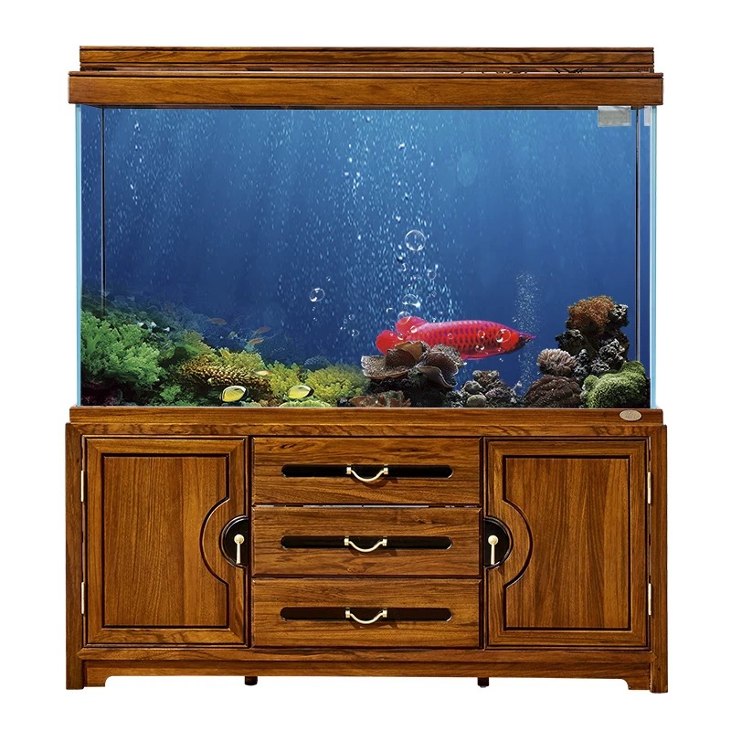 New Chinese mood Jiangnan ultra white glass relies on wall fish tank solid wood filtration and set