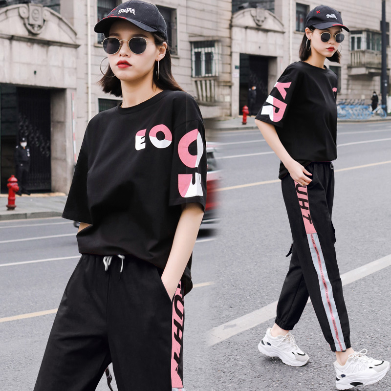 Sportswear suit female summer 2022 new fashion tide brand loose foreign style short-sleeved casual two-piece student