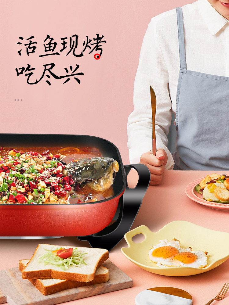 Jiuyang Electric Hot Pot G7 Household Multifunctional 6-10 Korean Large Capacity Roast Fish Plate Plug-in Electric Pot Roast Pot