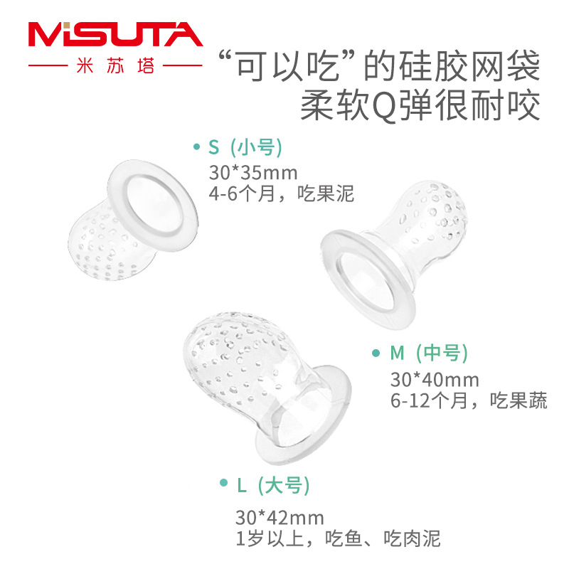 Misuta baby food bite bag mouth Le fruit and vegetable Le molar stick Baby eat fruit and non-food device Silicone tooth fixing device