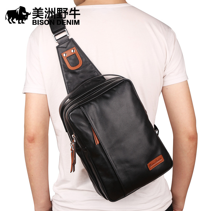 Americas Bison Chest Bag Genuine Leather Men's Bag Single Shoulder Sloped Satchel Satchel Head Layer Bull Leather Large Capacity Fashion Men's Bag