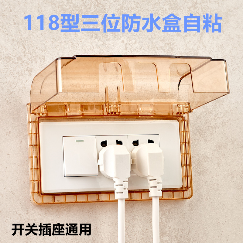 Three-socket waterproof case 118 type adhesive type 3-position 9-hole 15-hole socket waterproof cover bathroom switch bed bag