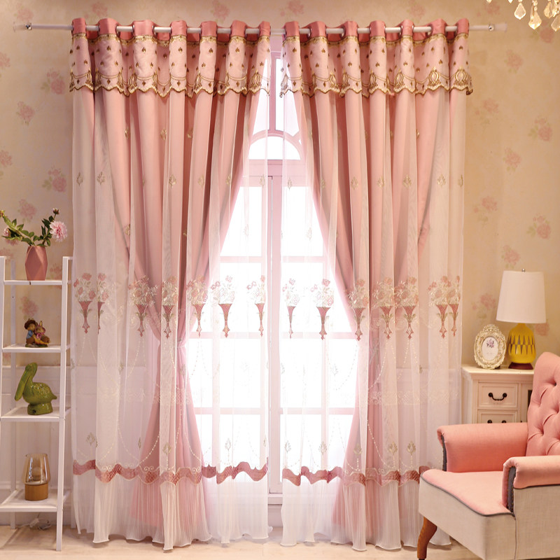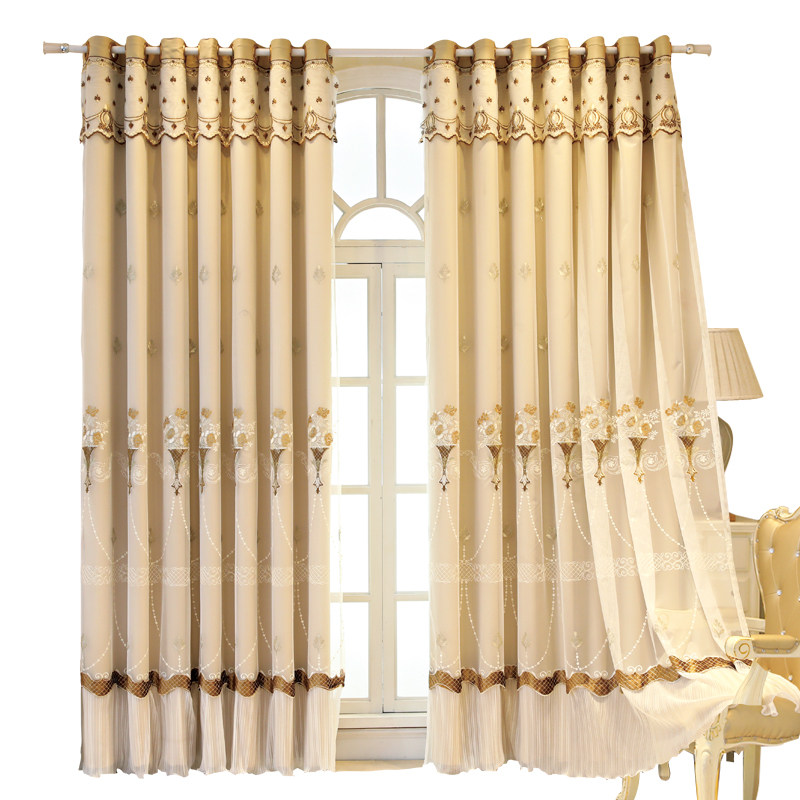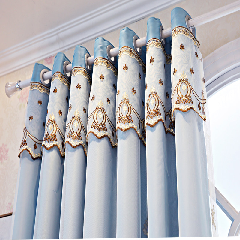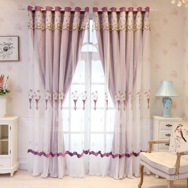 Double curtain finished embroidery fabric yarn one Nordic style simple bedroom full shading living room Floor-to-ceiling window with screen curtain