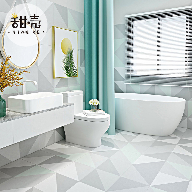 Green geometric tiles Nordic kitchen powder room wall tiles bathroom toilet balcony non-slip floor tiles flower tiles 300