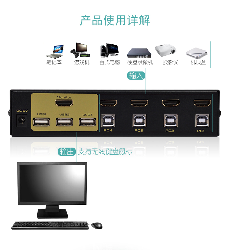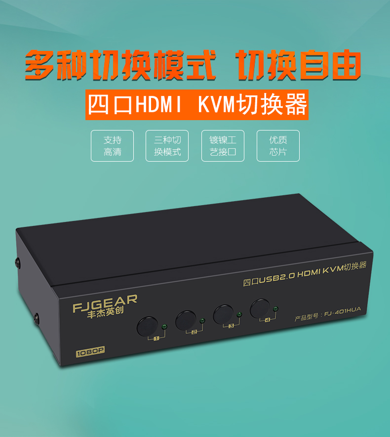 Fengjie KVM switch 4 port USB automatic HDMI 4 in 1 display keyboard mouse sharer wiring