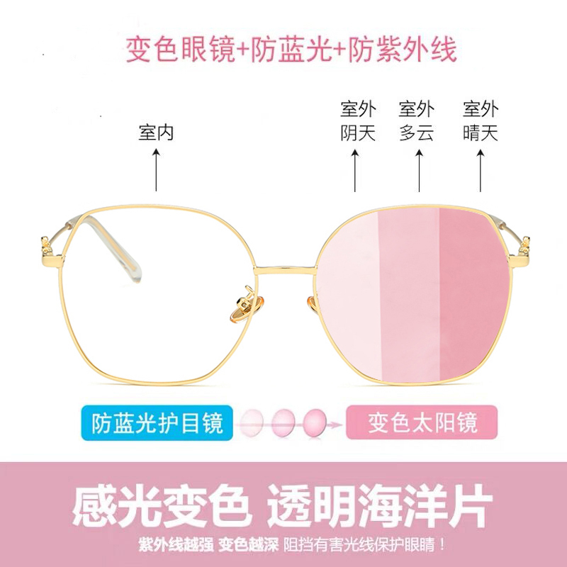 Photochromic glasses myopia female anti-blue light anti-radiation large frame plain glasses frame net red flat light eye protection