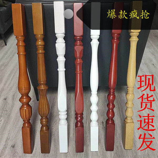 Spot Thailand rubber wood paint solid wood Stair handrail column Household balcony guardrail column Red oak railing