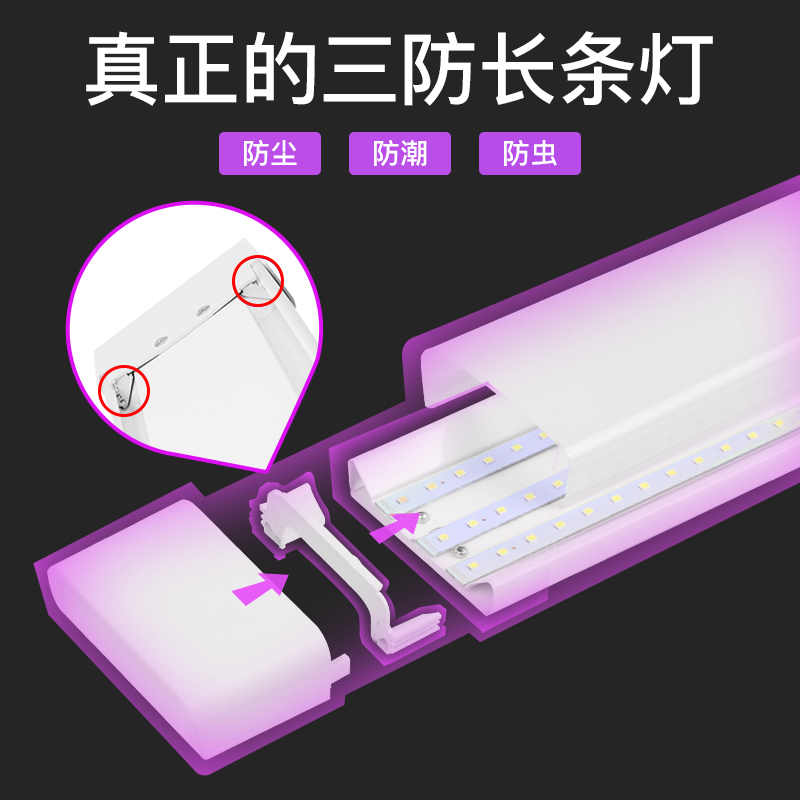 Led purification lamp strip integrated double tube fluorescent lamp three-proof with lampshade office full set of ultra-bright lamp CJ