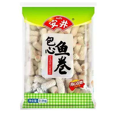 Anjing Frozen Bag Heart fish roll 5kg Kwantung cooked spicy hot pot meatballs, Makei skewers hot pot food fast food
