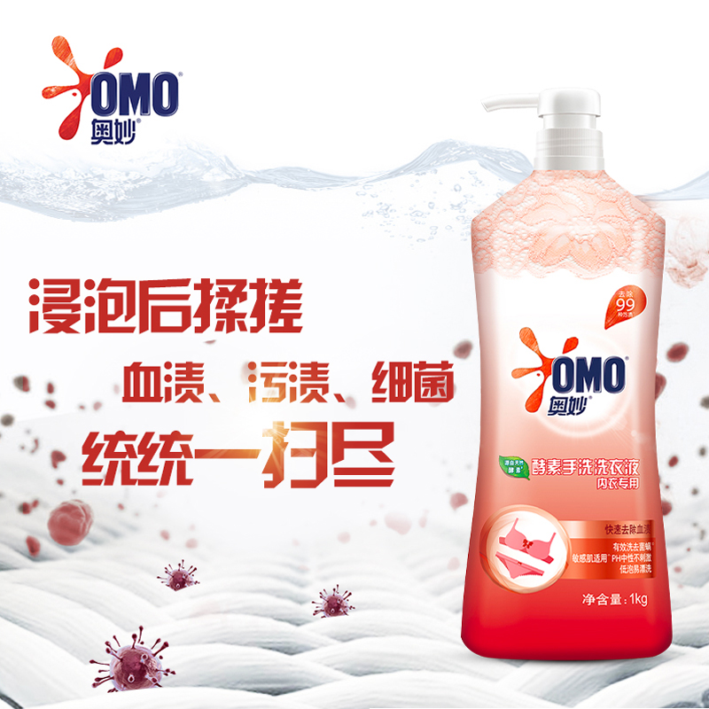 OMO enzyme hand washing special laundry liquid 1KG ladies underwear cleaning to remove blood stains sensitive skin long-lasting fragrance