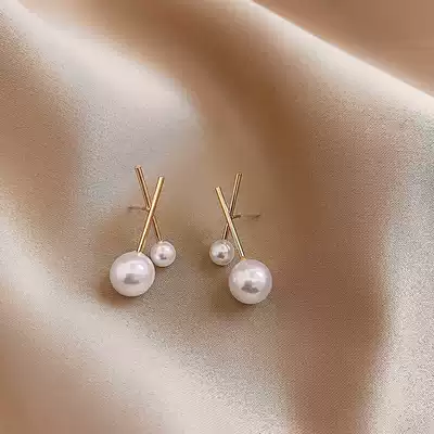 Gold cross pearl earrings women simple and small 2021 new fashion earrings Korean temperament net red high-grade earrings