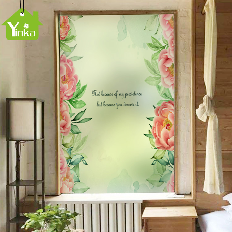 Simple green plant rose background wall Living room bedroom glass partition Nordic decorative painting stickers self-adhesive wallpaper