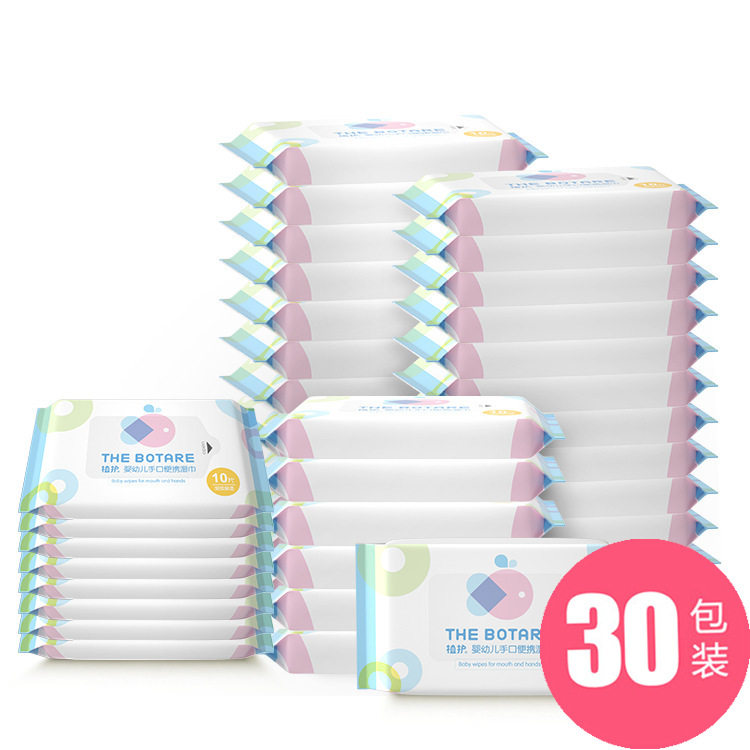 Plant protection baby wet wipes 10 pieces * 30 packets of baby hand-mouth wet tissue portable packaging cleaning wet wipes